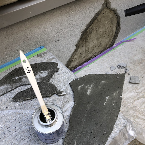 エポキシ樹脂を表面に施工した後に微弾性下塗りを行います。