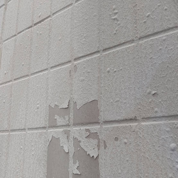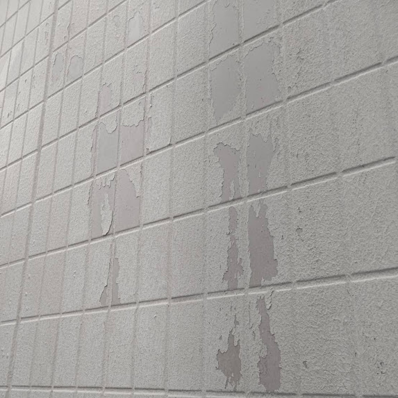 タイルの外壁に恐らく水性の塗料を下塗り無しで塗装したものと思われます。