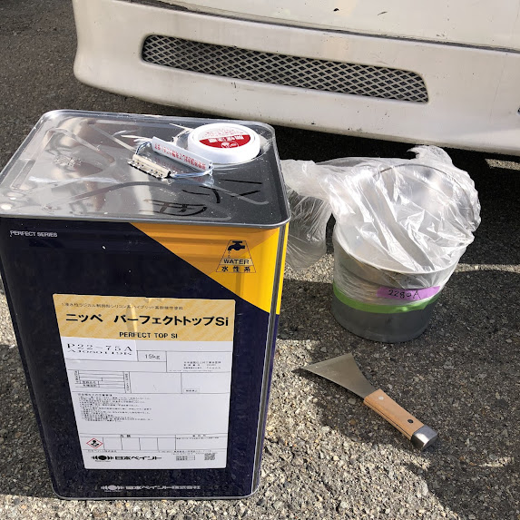 使用した塗料は日本ペイントの「サーモアイDF クールホワイト」。 表面にしっかりとした艶が出ており、