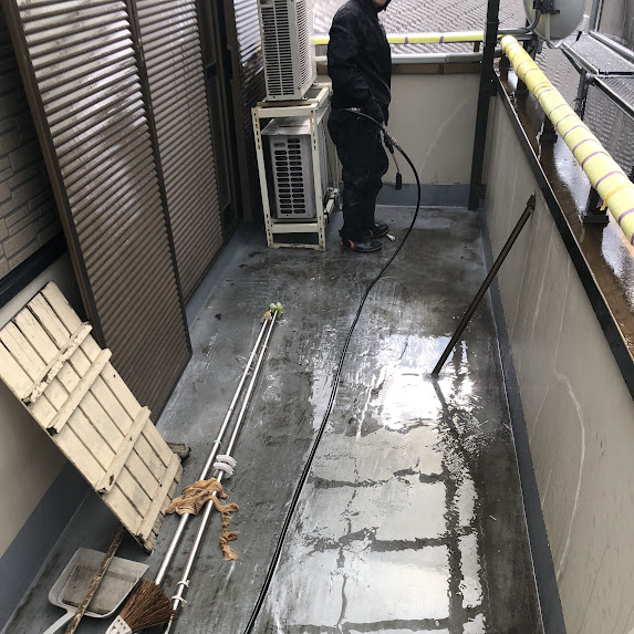 高圧洗浄で捲れてしまった防水の下地処理を行いました😁
