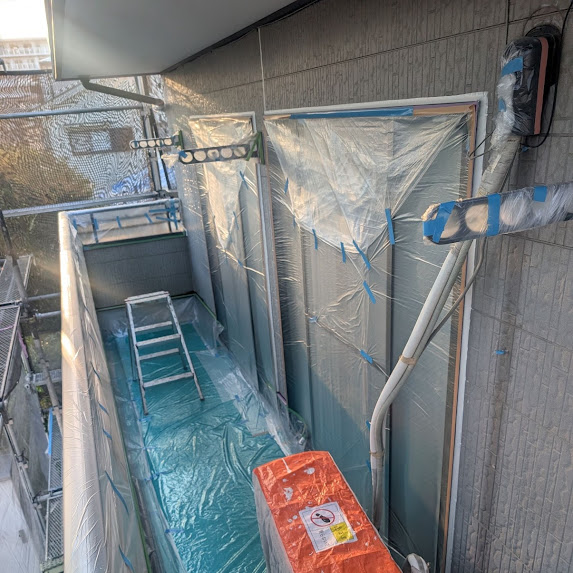 #飛散防止養生#錆び止め後に#外壁塗装準備
