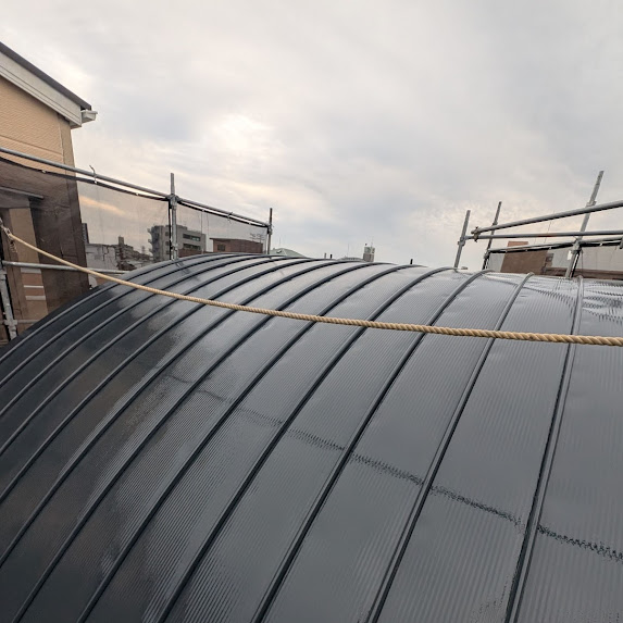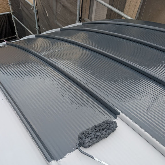 アーチ状になっているガルバニウム屋根を塗装しました🤩
