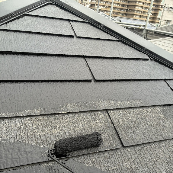 #スレート屋根塗装#ブラック#縁切りはカッターで