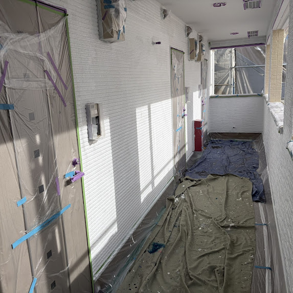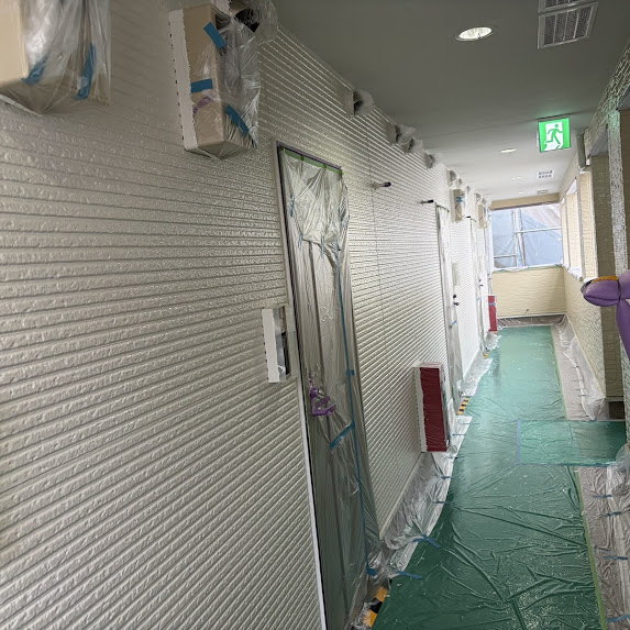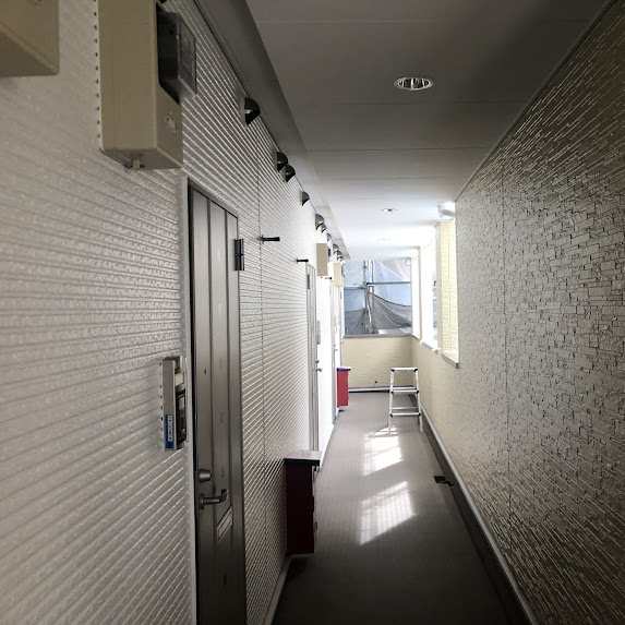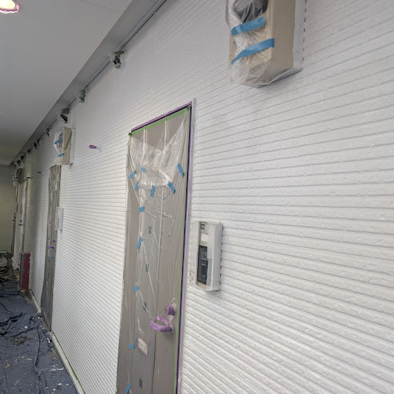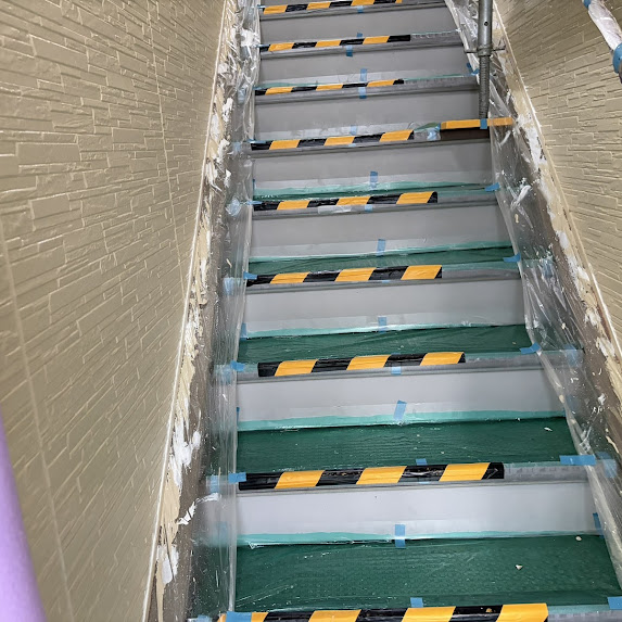 出入り口で入居者様の通行がある箇所での施工となりますので、 安全第一で丁寧に施工していきます😄