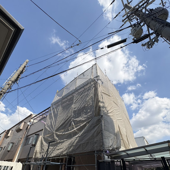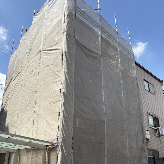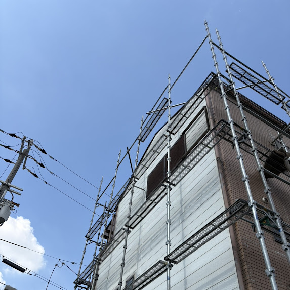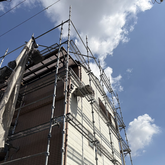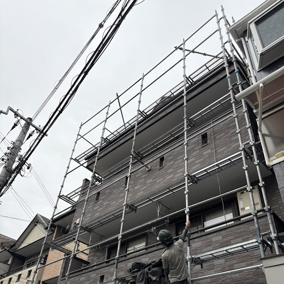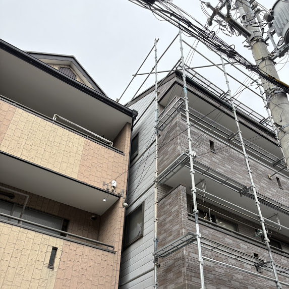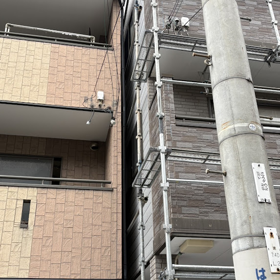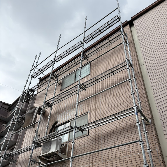 #足場組み立て#マンション敷地内施工#タイル剥落防止