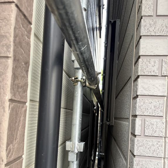 足場組み立ての1面がマンション隣保様の敷地内に建てさせていただきました。
