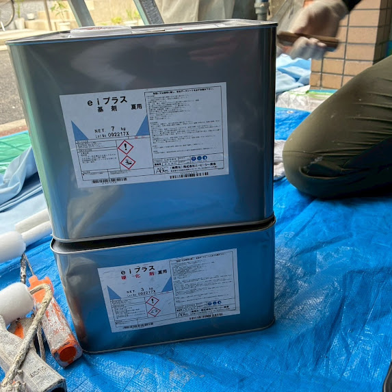 ここからタイル裏側全体的にエポキシ樹脂の注入と、