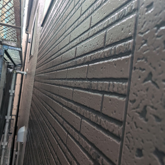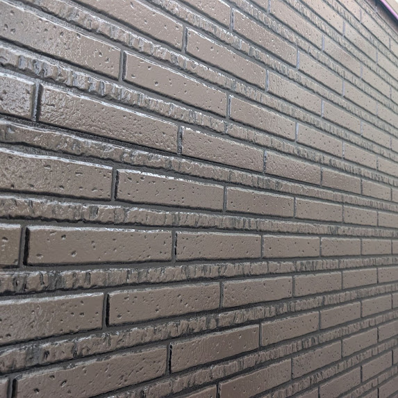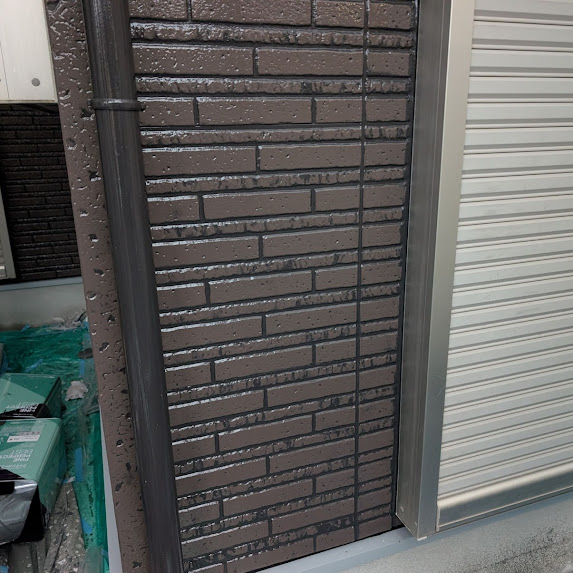 上塗りが完成した外壁にダブルトーンの 4工程目を施工しました😁