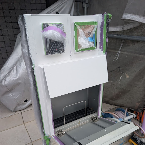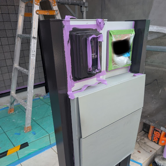 また、インターホンや投入口などの細かな部分は入念に養生し、