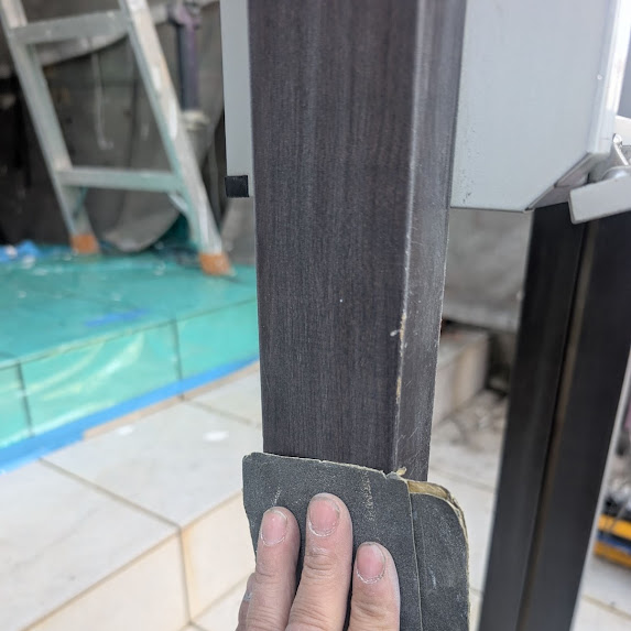 今回の施工では、塗装前にしっかりとケレン(研磨)作業を行い、表面の汚れや細かな傷を整えることで塗料の密着性を高めました。