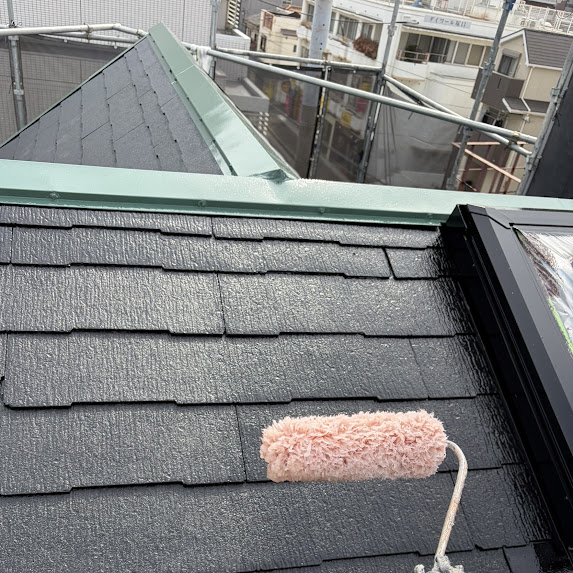棟板金部分が均一に塗装され光沢と発色の良さが際立っているのが分かります。