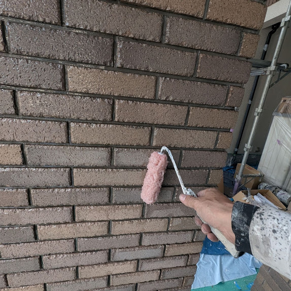 #レンガタイルクリヤー#刷毛塗り#ファイングラシィ