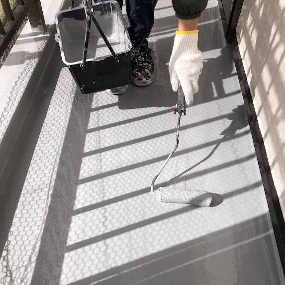 エポキシ樹脂を表面に施工した後に微弾性下塗りを行います。