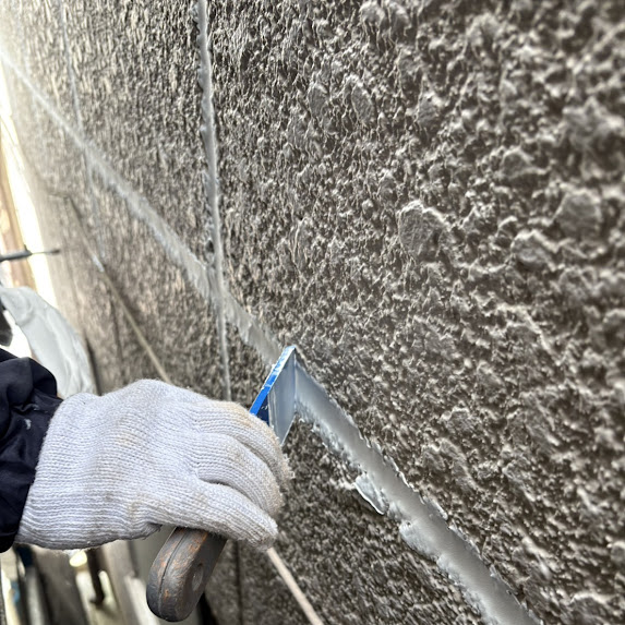 ヘラで均している工程です。 シーリング材をしっかり奥まで充填し、
